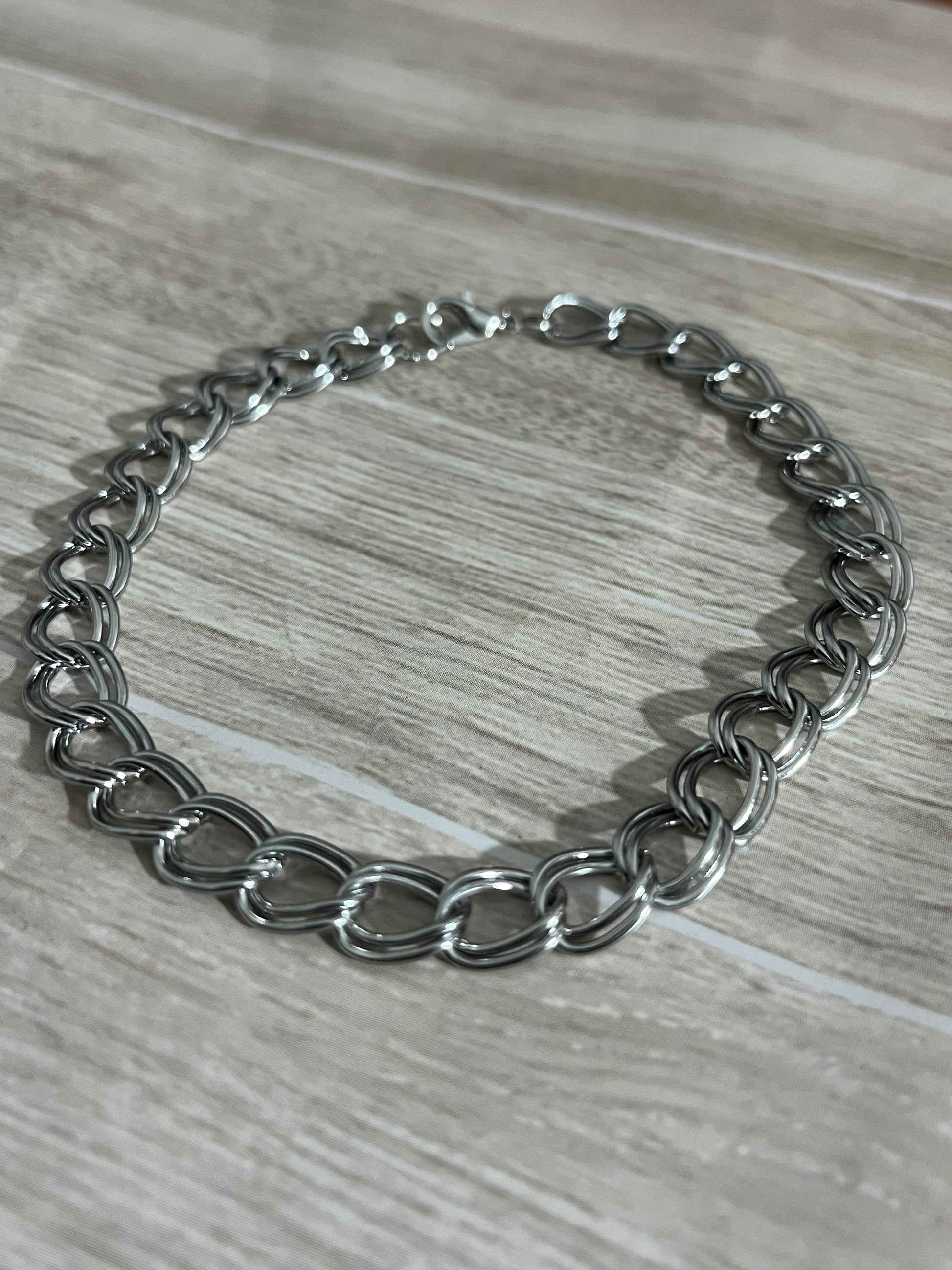 Stainless steel chain that is sturdy and durable, designed to withstand everyday wear.
